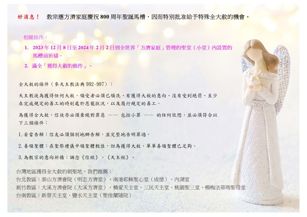 照顧聖地的基督徒 每年的耶穌受難日,天主教會都會募集善款,以支持在聖地服務的方濟會的工作。那裡的基督徒十分依賴這份來自世界各地的幫助。 美國方濟聖地基金會(The Franciscan Monastery of the Holy Land in America,https://myfranciscan.org/)是Commissariats of the Holy Land(https://www.custodia.org/en/commissariats/)網絡的一部分,該網絡提供聖地與世界各地基督徒之間的橋樑。在華盛頓特區的方濟會則負責協助在聖地服務的方濟會在這方面工作的溝通與協調。 聖地監護方濟會會士負有獨特使命,要照顧聖地以及居住在那裡的基督徒。支持生活在聖地的基督徒至關重要,以便在這片因耶穌的生、死和復活而變得神聖的土地上維持基督徒的信仰。 聖週五耶穌受難日募得而來的善款將用於以下計劃: 聖地的信仰、紀錄與文化 聖地方濟會修士和工作人員負責維護聖地和聖所。這使生活在聖地的人和那些來訪者能夠加深他們的信仰以及與救恩歷史文化與精神的聯繫。 社會及慈善活動 為了幫助基督徒留在聖地,包括貧困者和年輕夫婦,聖地方濟會監護區建設了數千個住所。此外,他們還設立了老年照護中心,為有需要的人提供醫療援助。 […]