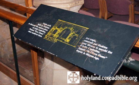 哈德良皇帝同時又在廣場豎起有著三個出入口的拱門,中間最大的一個就是知名的 “Ecce Homo Arch” (no. 14 ),它横跨Via Dolorosa並一直延伸進入修女院的聖堂中,在那裡人們還可以看見拱門北段較小的圓弧。