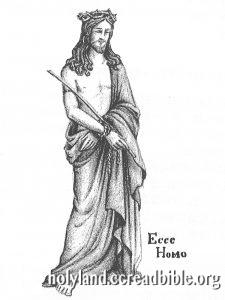 兵士把耶穌帶到庭院裡面,即總督府內,把全隊叫齊,給耶穌穿上紫紅袍,編了一個茨冠給他戴上,開始向他致敬說:「猶太人的君王,萬歲!」然後用一根蘆葦敲他的頭,向他吐唾沫,屈膝朝拜他。