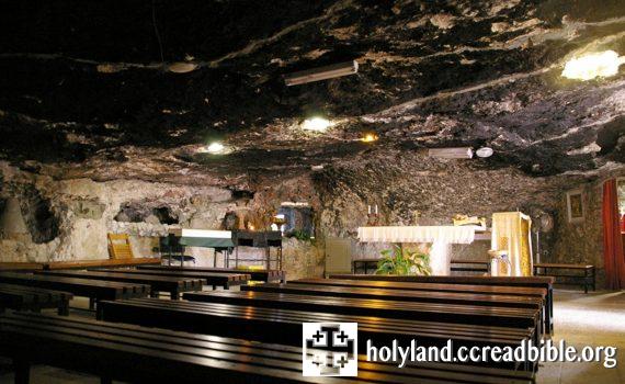 由於這新聖堂的建立,使原本在聖堂後的山洞成為多餘,因為這山洞原是以前人們為舉行禮儀而建立的。雖然在此山洞中,沒有任何記號顯示,過去曾有人在此舉行過敬禮,但是它卻常打動人心,因此人們在這個山洞旁邊,又設立了一些山洞,供朝聖者舉行彌撒。當然毫無疑問地,這些山洞自古以來一直被牧羊人使用。從農田及橄欖樹之上人們可一直看見達味之城白冷(路二4),景色十分漂亮。人們在此就有如親身經歷路加福音的描述一般: